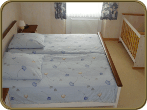 3 bedrooms, cradle, additional bed possible, balcony, telephone, sattelite TV, central heating,